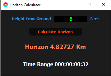 The distance along the surface of the earth to the horizon is called horizon distance. For example, if your eye is 5 feet about ground level, then the horizon distance is about 4.40668 km away.